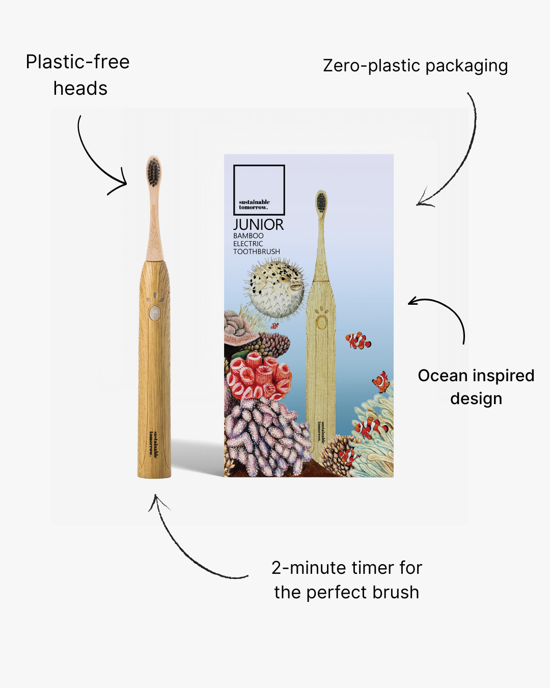 - Junior Bamboo Electric Toothbrush Handle: Sized for children's hands, made from sustainably sourced bamboo.
